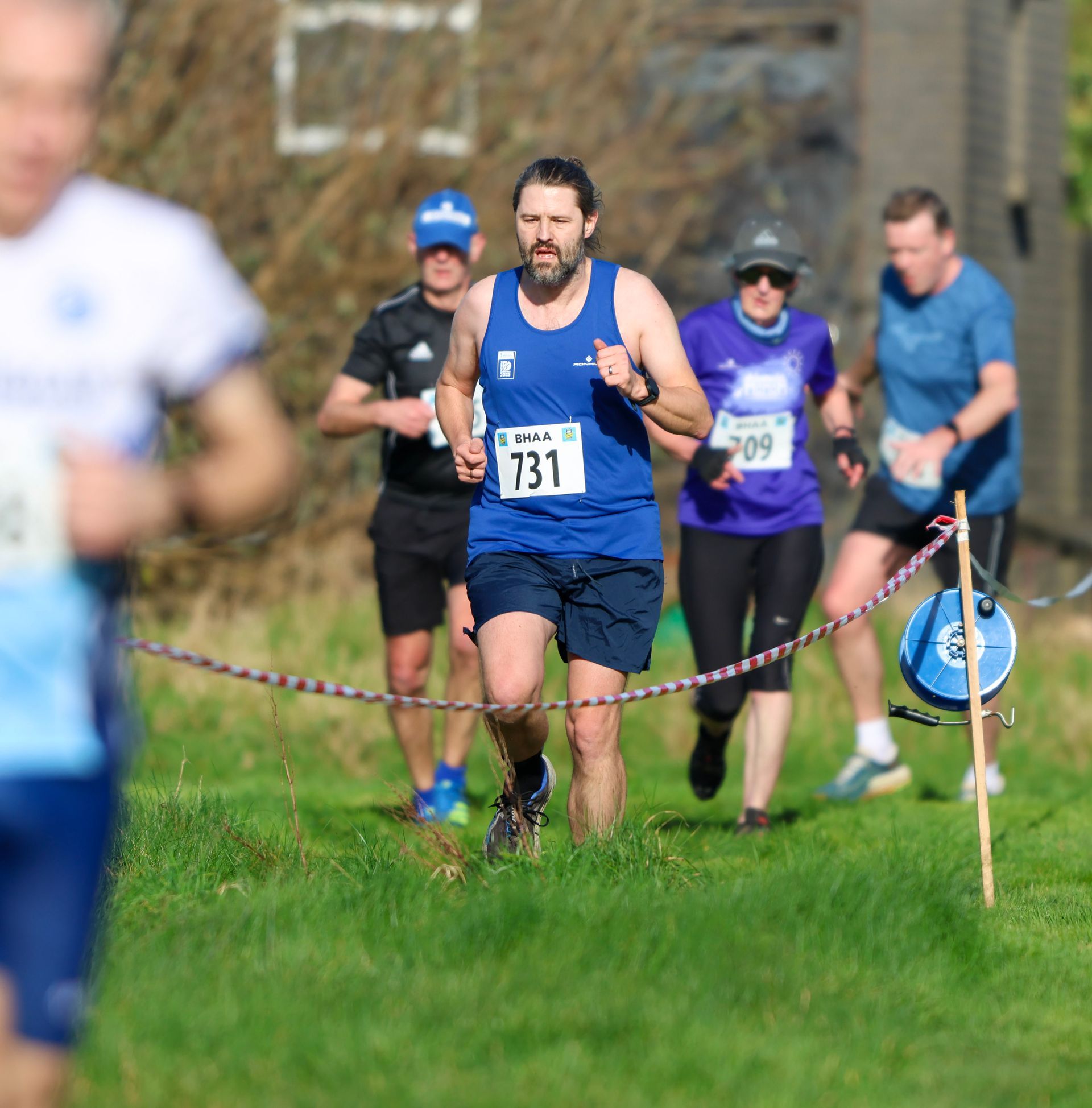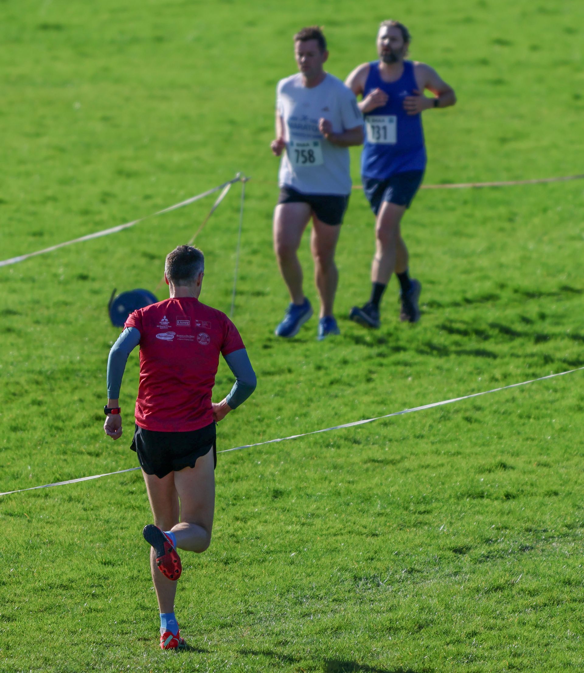The mild, sunny weather on race-day was a welcome change after the wet conditions of recent weeks. Surprisingly, the underfoot conditions were fairly dry and the flat, zig-zag course, skirting the playing fields was well grassed with little or no mud and just a few thistles here and there.